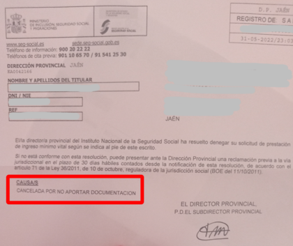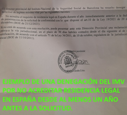Denegación imv - Ingreso mínimo vital