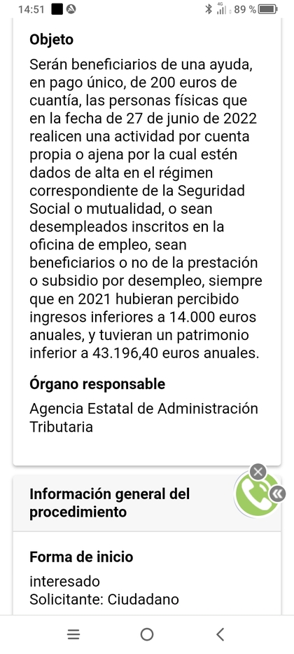 La verdad es que 200 euros de una vez, pues ya pasando por todos los trámites que hay que hacer y cuando se pueda cobrar, me parece que no llega a casi nadie.