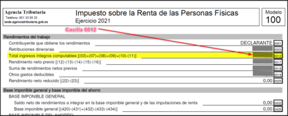 OJO: Si fueses por ejemplo tres adultos (abuelo, padre y tío por poner el caso) como cada uno hace su renta, hay que sumar la casilla 0012 de todas y cada una de las declaraciones presentadas.