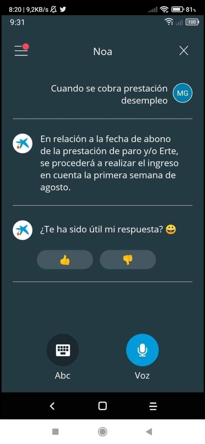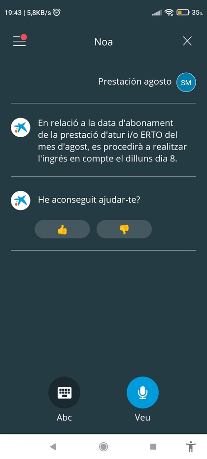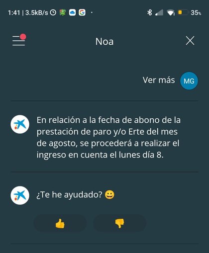 Si os metéis en la aplicación de la caixa hay un asistente virtual, NOA Si preguntáis lo dice, se va a proceder con el pago el día 8 de agosto