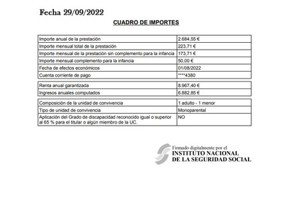 Y en 2022 solo he cobrado el IMV y la pensión de alimentos de mi hija.