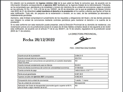 Hoy he recibido una carta supongo que es la actualización, en la que me dejan la misma cantidad que vengo cobrando desde septiembre, la cuestión es que en ambas cartas me pone la misma cuantía y los mismos ingresos, pero yo no he percibido esos ingresos en 2021.