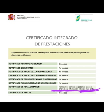 Hola buenas tardes a mi también me sale eso en el certificado de revalidación yo tengo solicitado el imv desde junio y aún nose nada solo al meterme ha cambiado eso nose k será.