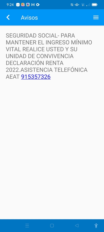 #5 Re: Renta - Ingreso mínimo vital Ver mensaje de Noe2015 Sandrakk Seguir 04/05/23 10:42 Pero si yo la quiero hacer presencial y no por teléfono es que hasta el 25 de mayo no se puede pedir cita Responder