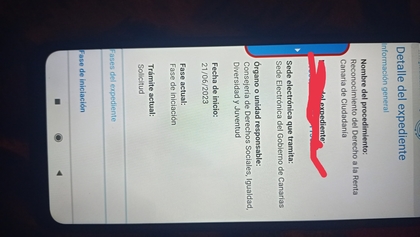 Es el detalle de tu expediente iniciado el 21-06-2023 según muestras para la renta canaria de ciudadanía, que te indica que está en fase de iniciación (o sea, que está presentado nada más y comenzando a mirarlo)