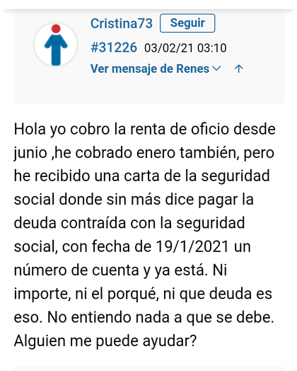 Hola, necesito si alguien me puede ayudar. En mi casa somos tres personas ,mis dos hijos y yo. En 2022, cobre 1089€ por monoparental, subida del 15% y lo de la infancia de los dos hijos. En octubre mi hija cumple 18 años, y de 1089€ paso a cobrar 1019€, En enero empiezo a cobrar 962€. Hasta aquí vale. Pero este mes he cobrado 288€, me han descontado 674€, sin avisarme de nada y estoy desubicada porque no entiendo el por qué y entenderéis estoy muy mal ya que me ha pillado en finde y hasta mañana no puedo hacer nada. Me dijeron ayer pagos indebidos, mi pregunta indebidos del 2022?, mi situación solo ha cambiado que mi hija ha cumplido 18, y mi pregunta también, en la tarjeta social me sale los 962€ y en alta, y certificado de prestaciones igual en alta, y las nóminas hasta 31 agosto 962€, me pudierais ayudar a tranquilizarme si eso es lo que siempre voy a cobrar ??? , y si no tiene nada que ver los de certificados de prestaciones y la tarjeta digital. Ayuda!!, estoy desesperada como vamos a vivir con 288€????,