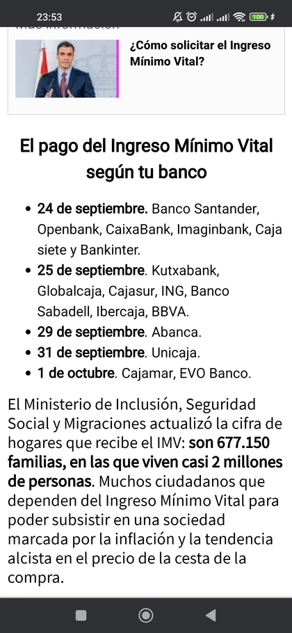 Exactamente como te ha dicho Sonia se cobra el último día hábil del mes ...si cae en sábado o domingo entonces lo adelantan al viernes. Y esas noticias normalmente no aciertan .....y si ya cobras el imv desde hace tiempo deberías saber demás el día de pago