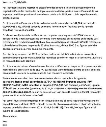 Revisa tu IRPF 2022 y mira a ver que importe aparece en la casilla 0018.  Localiza también la notificación de octubre 2023 del ajuste de tu IMV a ver como se te quedó y además revisa los cobros de IMV que tuviste mes a mes dicho año desde enero, porque si el pago de octubre 2023 fue inferior al de septiembre 2023, dicha diferencia por 10 meses es lo que deberían reclamarte.