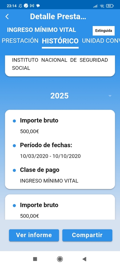 Me extraña ... nunca han salido los atrasos en el certificado integral de prestaciones ... si me dices en tarjeta social digital vale, porque ahí sí que aparece el importe de la nómina emitida de IMV cada mes.