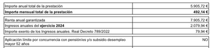 Ingresos 2024?, los que he marcado, casilla 0018 de 3.286 euros, nada más, ni intereses bancarios ni nada de nada más, ni alquileres ni nada de nada más, ni bonos térmico , ni casilla 0089 ni nada mas imputable, solo los 3.286. Sí, mi cuantía de ingreso mínimo vital va a ser la misma, cobro el máximo (178,81), eso lo sé y ya está confirmado, lo único que necesito saber es que dinero se me va a imputar según el IRPF 2024 que he comentado, cuando manden la carta en el apartado que dice "ingresos anuales computados" 2024, si van a ser los 2.000 euros o no, porque entiendo que los 1.286 son el incentivo al empleo..., ¿o me equivoco?