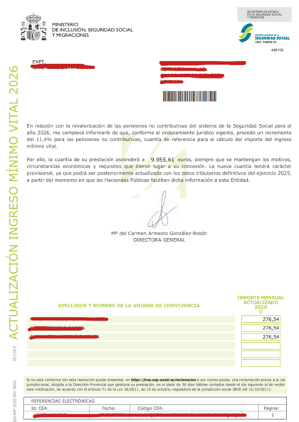 El año pasado se cobro desde enero a abril 1010 €. A partir de mayo y hasta el mes pasado 57,50€