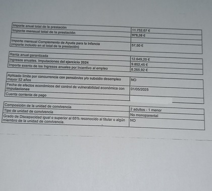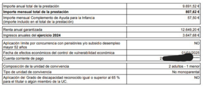 Por tanto, os recomiendo reclamar dicha notificación última, ahí tenéis las cuentas de lo que os corresponde realmente, frente a los 807,62€/mes de IMV+CAPI que os han notificado 👇