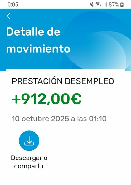 #1079 Re: Paro Noviembre 2025 Ver mensaje de Gusreala Sitoxxx Seguir 10/11/25 00:18 Yo llevo ya meses cobrando y siempre entra el ingreso sobre las 00:45 en BBVAy la Caixa tamb sobre esa hora más o menos Responder