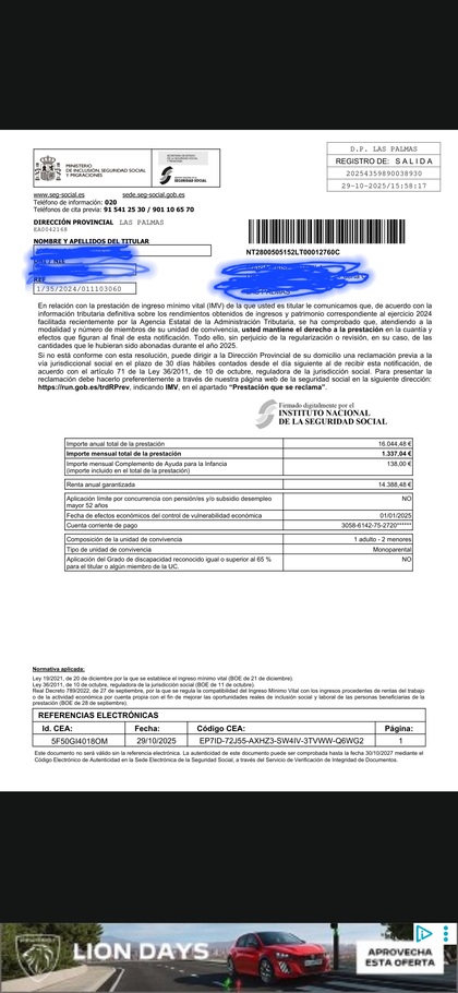 #16 Re: NOTIFICACION IMV a alguien más no le ha llegado - Ingreso mínimo vital Mariapai Seguir 30/10/25 08:02 Hola a mi me ha llegado esto, si no entiwndo mal sigo igual no? Responder