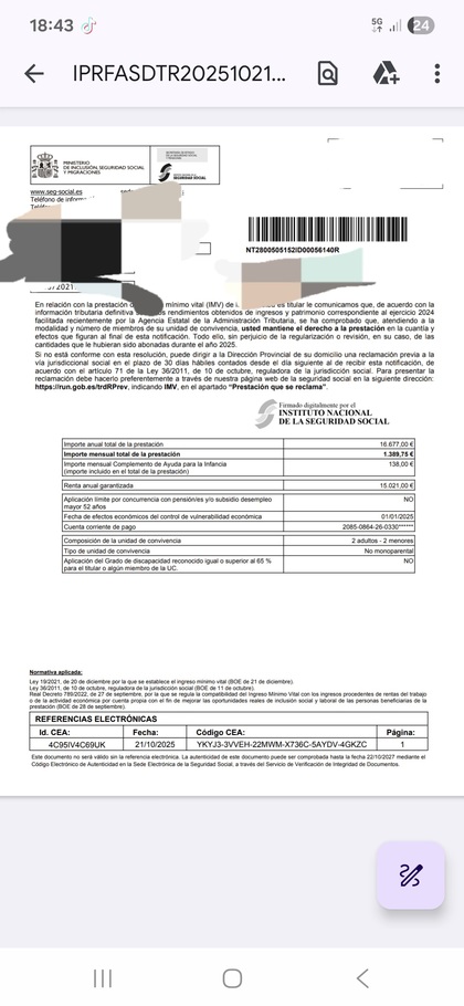 Re: Subida IMV para 2026 - Ingreso mínimo vital