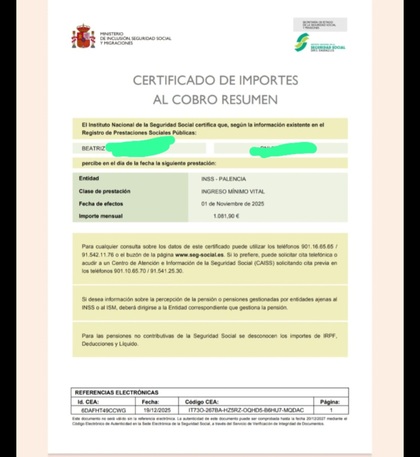 Es tan solo una página de un certificado integral de prestaciones, pero ya te digo es complicado que "te viniera esa carta" sin más, como parece afirmas, sin que tú la hubieras solicitado u obtenido por internet a caso hecho el pasado 19-12-2025 😏