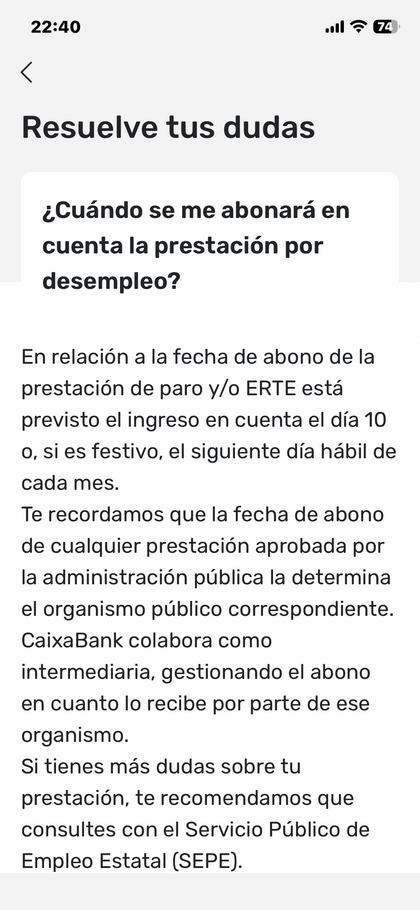 El banco programa las nóminas del SEPE al igual que las pensiones. En BBVA deberíamos de cobrar esta noche, aunque yo nunca he cobrado un nómina un sábado, llevo pocos meses en el paro siempre ha caído entre semana. Pero esperemos que cobremos venga que queda menos 😂😂😂 el movimiento previsto de esta noche me parece solo falta que se haga realidad