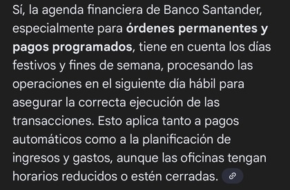 NO tiene en cuenta los festivos para LAS ESTIMACIONES, que parece que no sabes ni leer lo que te pone la triste IA de Google - tiene en cuenta los festivos y los fin de semanas para LOS PAGOS PROGRAMADOS.