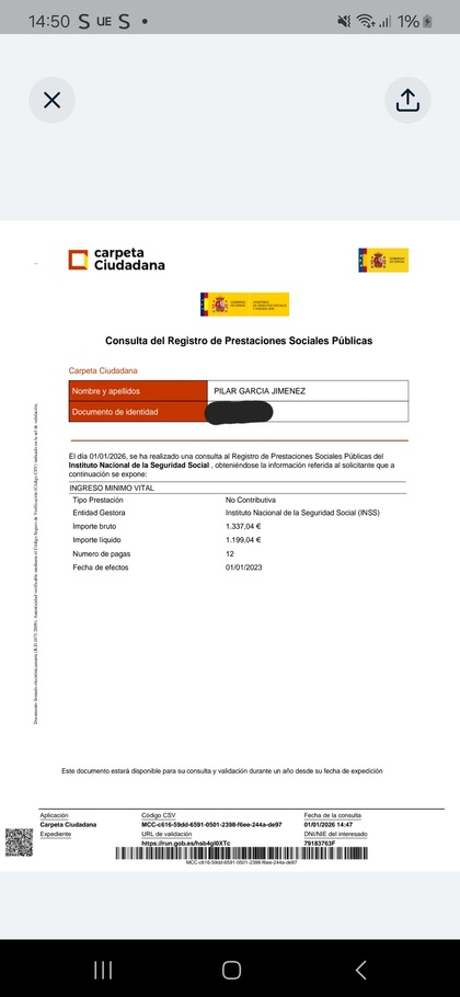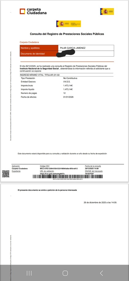 Si lo obtienes ahora en enero 2026, pondrá eso, fecha de efectos diciembre 2025... y no es un error, es que funciona así... llevamos tiempo comentando que los certificados integrales de prestaciones es un documento que han ido cambiando cada 3x2 en la Seguridad Social desde mayo 2025, y que desde hace unos meses ahora solo refleja el importe del último abono de IMV recibido.