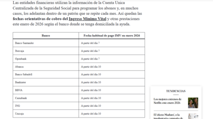 Calendario general de cobro en enero de 2026 - Ingreso mínimo vital