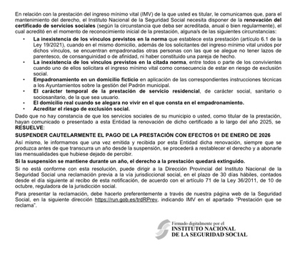 IMV SUSPENDIDO certificado servicios sociales - Ingreso mínimo vital
