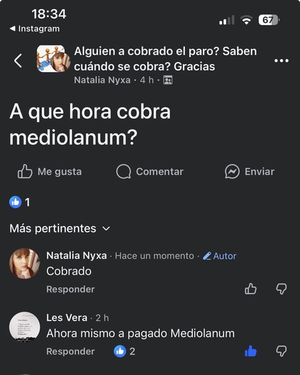 Eeeh que ojala cobréis Santander y Open Bank hoy! Que aquí estamos todos igual cobrando el paro, vamos todos en el mismo barco. Únicamente estoy diciendo que yo soy Mediolanum y no he cobrado. Y este foro debería ser precisamente para ser 100 × 100 efectivo y no estar dudando porque hay gente que se dedica a hacer tonterías