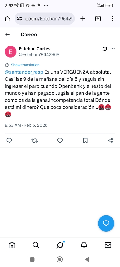 País de vagos, en vez de perder tiempo mirando una app a ver si os entra el dinero, aprovecharlo para meteros en otra app para búsqueda de empleo, y si os queréis tocar la felpa, entonces esperar como todo hijo de Cristiano al día 10, que si lo pagan antes, dar gracias en vez de quejarse tanto, no decir...me van a escuchar hoy en Santander, si si, lo que se van es a reír cuando vayas reclamando y exigiendo algo que no es obligación. Ala, Saludos y buenos días!!