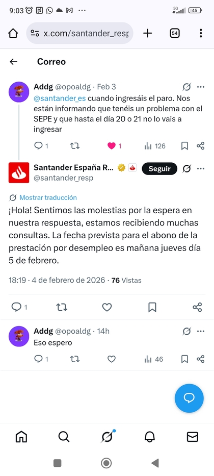 Pues si, así es pero no nos olvidemos que ellos sin clientes no pueden ganar esas millonadas. A mí Santander no me iba mal pero el cachondeo del paro solo lo he visto en ellos, el cobro deberíamos de saber día y hora, todos tenemos pagos y compromisos