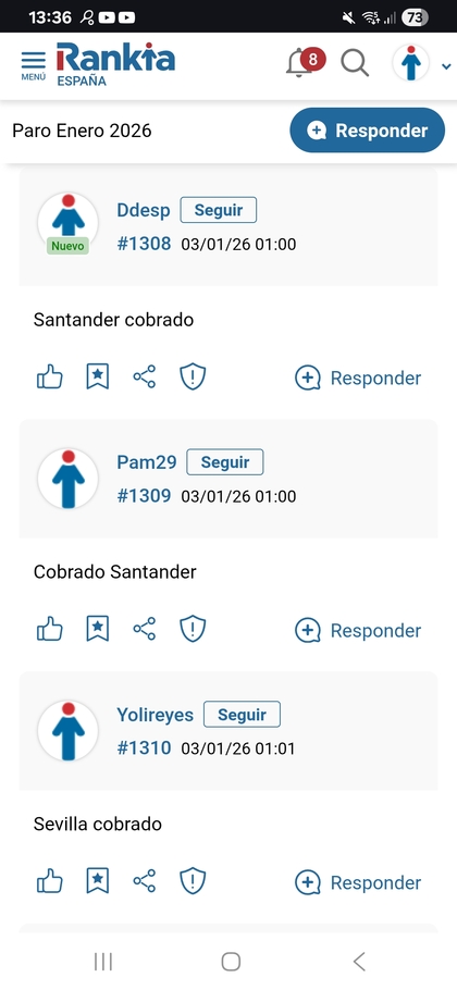 Ahi lo he colgado, esta persona, ella misma, el 3 de enero puso "cobrado". Es tan sencillo como irse al histórico de enero y ver que todos los de Santander recibimos el dinero en cuenta el 3 de enero, sábado. Así de sencillo