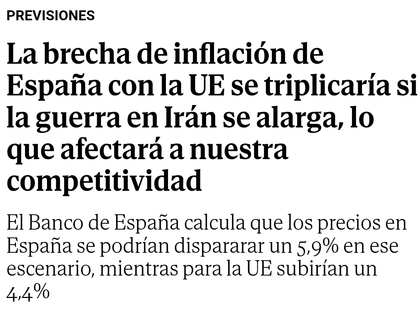 ¡¡¡ IMPORTANTE !!! YA HAN DICHO AUTORIDADES ECONOMICOS DEL BANCO CENTRAL EUROPEO Y DEL FONDO MONETARIO INTERNACIONAL QUE LA INFLACION EN ESPAÑA VA A SER MAYOR DEL 3 % POR EL TEMA DE LA GUERRA EN IRAN, Y QUE SI LA GUERRA SE PROLONGA MUCHO TIEMPO , LA INFLACION PODRIA SUPERAR EL 5 % , NO HAY MAS QUE VER LOS PRECIOS DE LA LUZ, DE LA COMIDA CUANDO VAS A COMPRAR