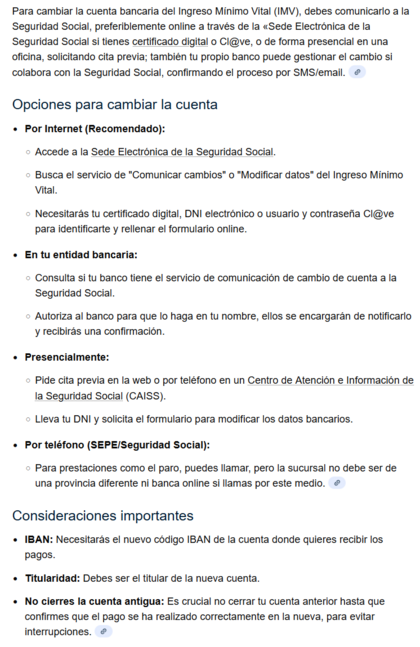 #1 Cambiar banco de IMV - Ingreso mínimo vital Ariadna10 Seguir 04/02/26 14:40 Hola alguien sabe cómo puedo cambiar el número de cuenta del ingreso mínimo vital ? Y cuánto tarda en hacesee efectivo Responder