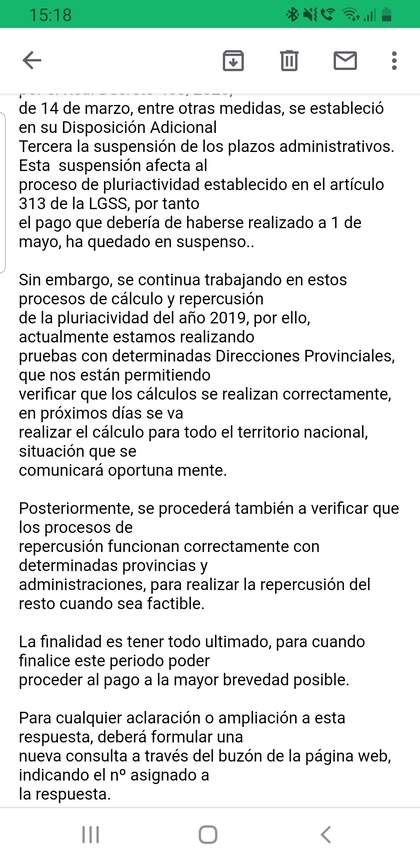 Entiendo que, dado que cuando se suspendió el plazo (14 de marzo) quedaba un mes y medio hasta el 1 de mayo, una vez reanudado deberían resolver y pagar en ese mes y medio, lo que nos llevaría como máximo a mediados de julio.