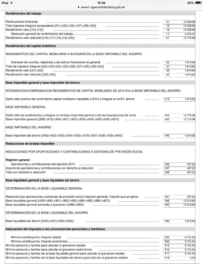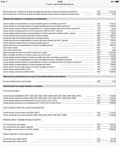 Hola buenas, tengo que volver a recurrir a la sapiencia de este foro para resolver una duda de la declaración de irpf. Os explico un poco por donde va la duda: mi madre cobra una viudedad cuyos ingresos brutos son de 15000 euros al año. Según el programa de retenciones de Hacienda debe abonar el 10% en concepto de irpf, en la nómina mensual que le abona el INSS ya le retienen dicha cantidad que se refleja en el borrador, 1500 euros. Ahora bien, hasta mayo del 2014 tuvo un depósito que le repercutió unos 1800 euros, el banco le aplico el descuento del 21%, que también se aprecia en el borrador remitido. Tiene un plan de pensiones al que abono cerca de 400 euros durante todo el año, pero....el tema esta en que el resultado le sale a ingresar a favor de la hacienda pública cerca de 230 euros. Mi pregunta es, si por el dinero que cobra por nómina ha pagado a Hacienda el 10% que es lo que le toca viendo el nivel de ingreso, y por el dinero obtenido por el depósito también pagó el 21 %, y si encima este año el plan de pensiones desgrava.... Como es posible que sin ningún ingreso más tenga que pagar. Y otra cosa, al tener ingresos de menos de 22000 euros, debe hacer la declaración de la renta. He leído la ley y el importe de 1600 euros para los intereses de los depósitos se habla de exclusividad. Muchas gracias de antemano, y un saludo