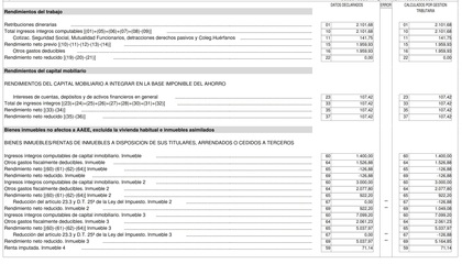 Con un asterisco destaco las cifras que no coinciden entre lo que declaro y lo que calcula hacienda.