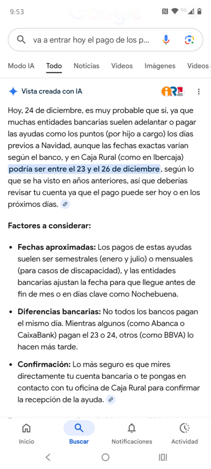 Pues si xq yo e mirado y en diciembre cobre el 23 sobre las 5 de la tarde y en Juno igual ,lo mismo se nos hace un milagro y hoy sobre las 5 nos hacen el ingreso,pero no se podrían tener un poco de empatía y más en las fechas q estamos ,yo si me llama la chica de la oficina os lo ago saber