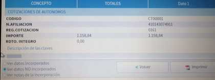 Datos no incorporados cotizaciones de autónomo