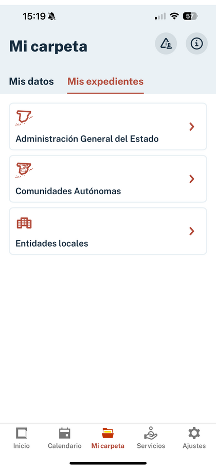 Según entras desde APP en la parte de abajo te debería salir mi carpeta seleccionas mis expedientes y seguido comunidades autónomas