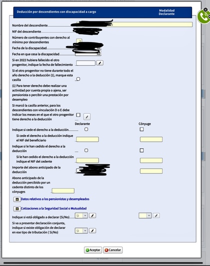 En el apartado por descendiente com discapacidad a cargo, en el apartado de abajo donde pone: indique si está obligado a declarar se refiere a mi como progenitor o a mi hijo?