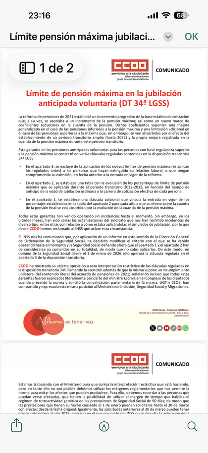 desde CCOO hemos reclamado al INSS que aclare esta circunstancia.