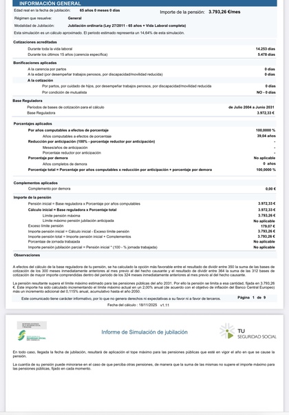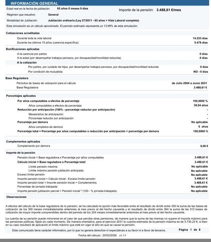 Cuando simulo al entra mi jubilación que me calcula la fecha Agosto 2028 que es cuando cumplo los 65 me da unac cantidad pero cuando empiezo a hacer simulaciones varias y vuelvo a poner esta fecha me calcula 500 euros menos en la BR