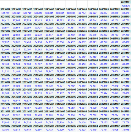 Para tranquilidad de todos los que os ha preocupado lo de las Simulaciones. Aqui os dejo una captura con los valores de IPC actualizados por parte del INE a la Base 2025, no me caben todos, desde Enero de 2009 hasta el ultimo. Si os fijáis veréis que todos los valores, no los he revisado todos, van subiendo y como el del mes 25 futuro (ejemplo Agosto 2028 ) también va incrementándose, por lo que la BA sobre este caso siempre se incrementará. Fuente INE