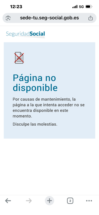 Ahora mismo la pagina de la seguridad social no esta disponible,"Error 404".