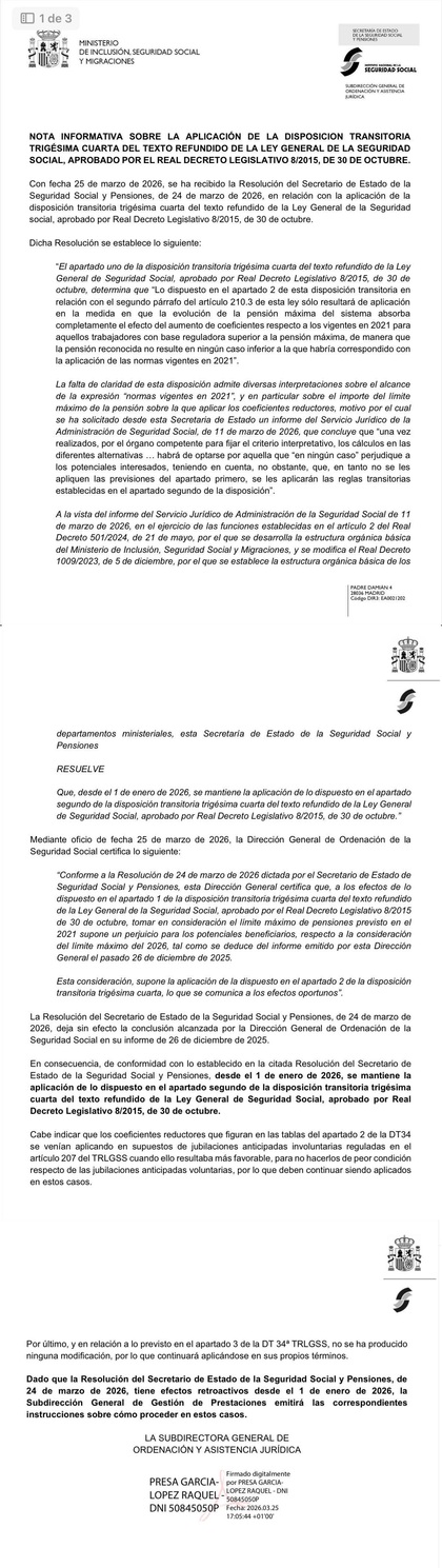 Buenos días! Esta vez parece que si lo son, nos abren la puerta nuevamente que nos cerraron el 1 de enero en todas las narices. Agradecer a @Jalcper, @Panconqueso, @Werner Pauli y todos los que iniciaron este foro hace ya más de 2 años y que tanto nos han ayudado a lidiar con la farragosa DT 34, especialmente en sus puntos 1 y 2, que nos dio alegrías al principio, penas posteriormente y hoy nos vuelve a alegrar enormemente a todos los que teníamos prevista nuestra ansiada jubilación en este año. A algunos nos va a suponer demorarla un par de meses o tres más de lo previsto inicialmente.