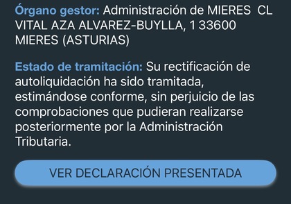 De todas formas ahí no pone que haya pasado a una oficina de contabilidad o algo de eso parece que todo normal yo soy tu y llamaría, porque siguen la administración de Mieres....