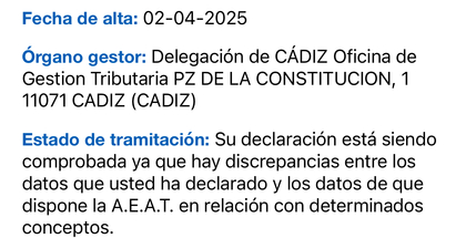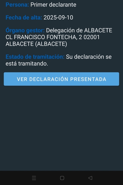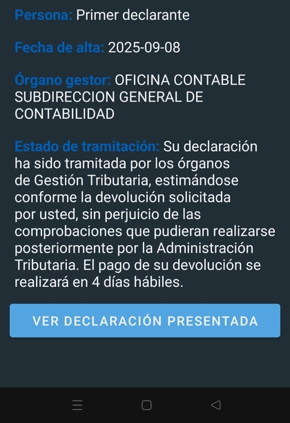 No me sale ningún órgano gestor todavía. En la aplicación sigue apareciendo el mensaje de si declaración se está tramitando,pero en una llamada telefónica el chico me ha dicho que a él le salía conforme