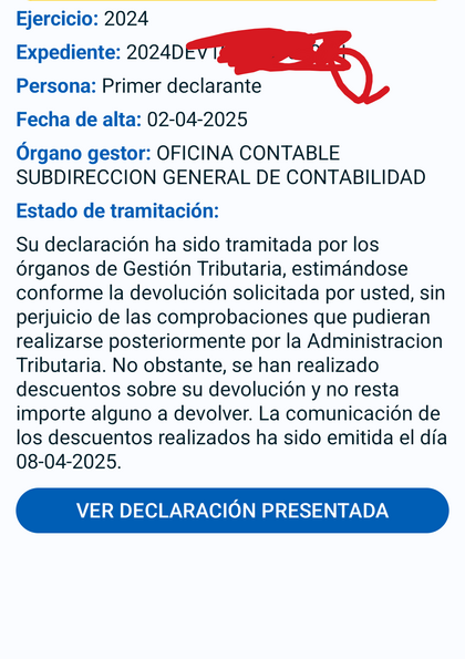 A mí me pasó el año pasado me ponía lo mismo ...y cuando llega el mensaje de la transferencia me salió que no quedaba importe a devolver...