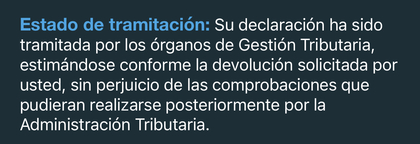 Hola, ayer me ponía Su declaración ha sido tramitada por los órganos de Gestión Tributaria, estimándose conforme la devolución solicitada por usted. No obstante, su devolución está siendo comprobada y hoy me vuelve a salir su devolución está siendo comprobada y nada más. Alguien sabe porque? Gracias