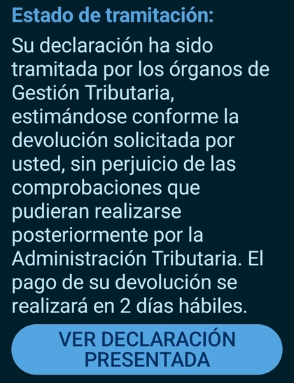 Hola que significa Estado de tramitación: Su declaración ha sido tramitada por los órganos de Gestión