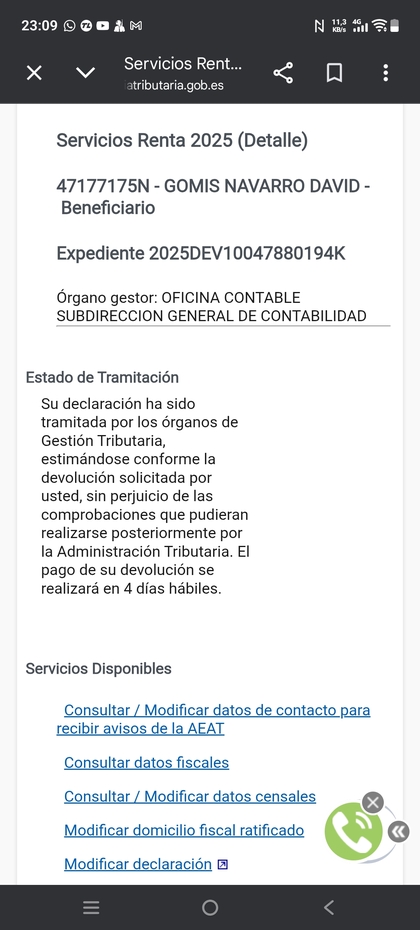 Me acaba de cambiar está noche también,jeje ,suerte a todos, 1188 euros de devolución,por separado de mi mujer en caceres