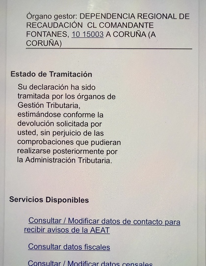 Delegación de A Coruña .Sigue tramitando, me tienen que devolver 260e . No se ha movido desde el día 7 por la tarde que confirme borrador.Desesperante.